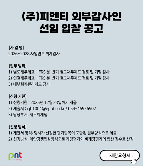 피엔티는 최고의 기술력으로 세상을 이롭게 할 변화를 선도하며